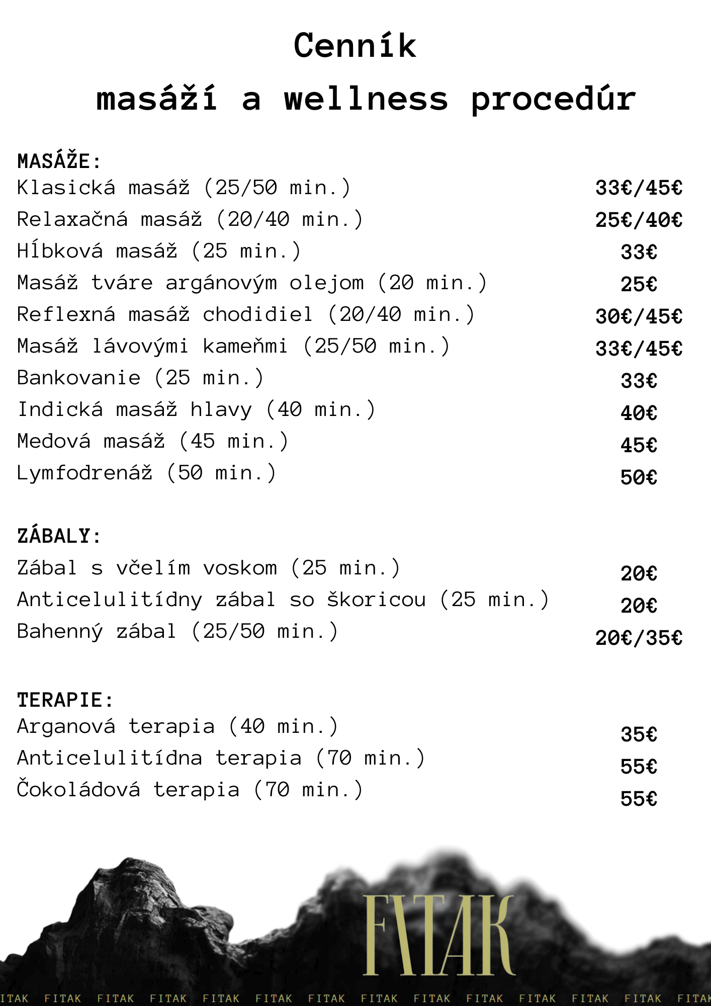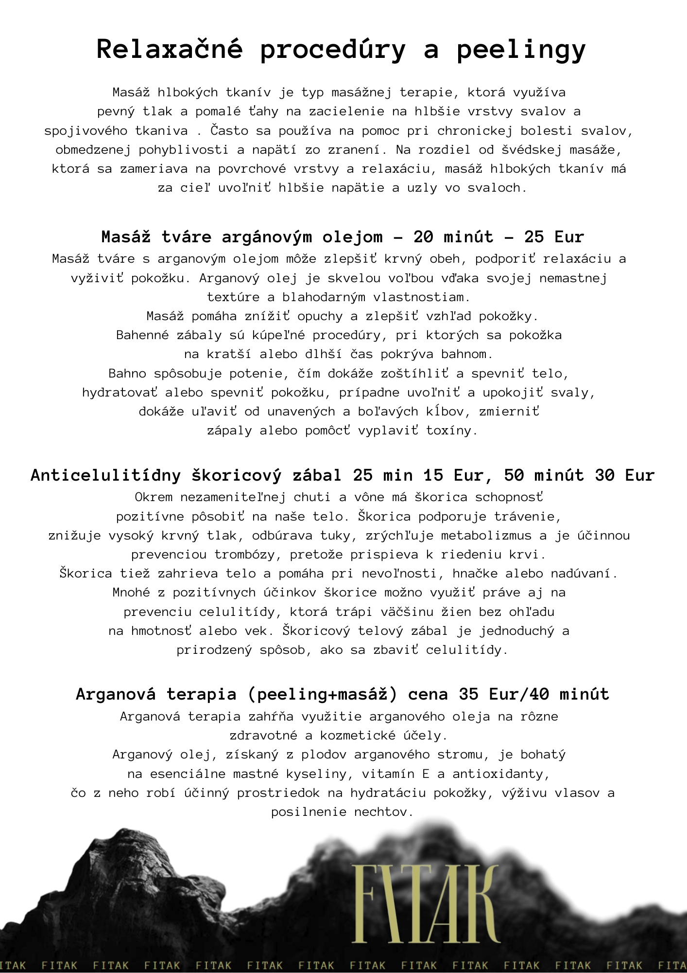 Masáže, zábaly, relaxačné procedúry, peelingy